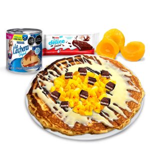 Hot Cake especial de Lechera, Durazno y Kinder Delice