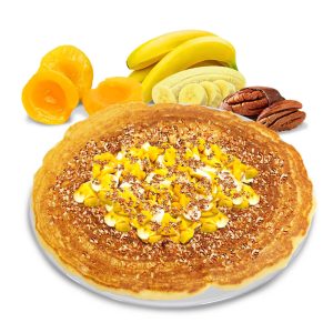 Crepa especial de Cajeta, Plátano, Durazno, Nuez y Crema Batida