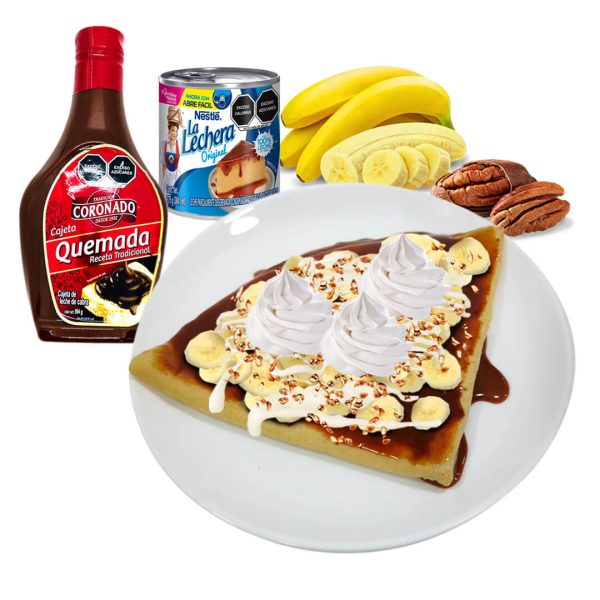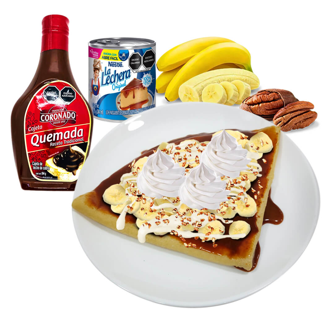 Crepa especial de Lechera, Cajeta, Plátano, Nuez y Crema Batida cantidad