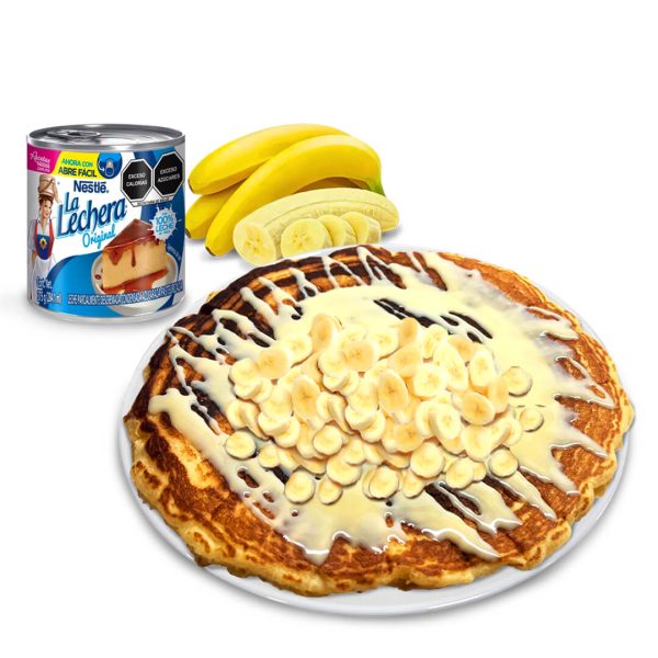 Hot Cake combinado de Cajeta, Durazno y Nuez