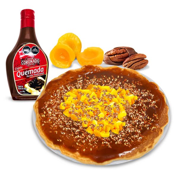 Hot Cake combinado de Cajeta, Durazno y Nuez