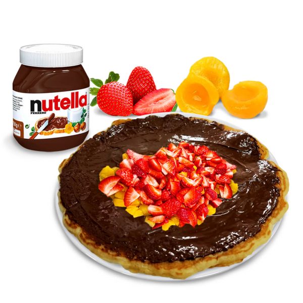 / Hot Cake combinado de Nutella, Fresa y Durazno